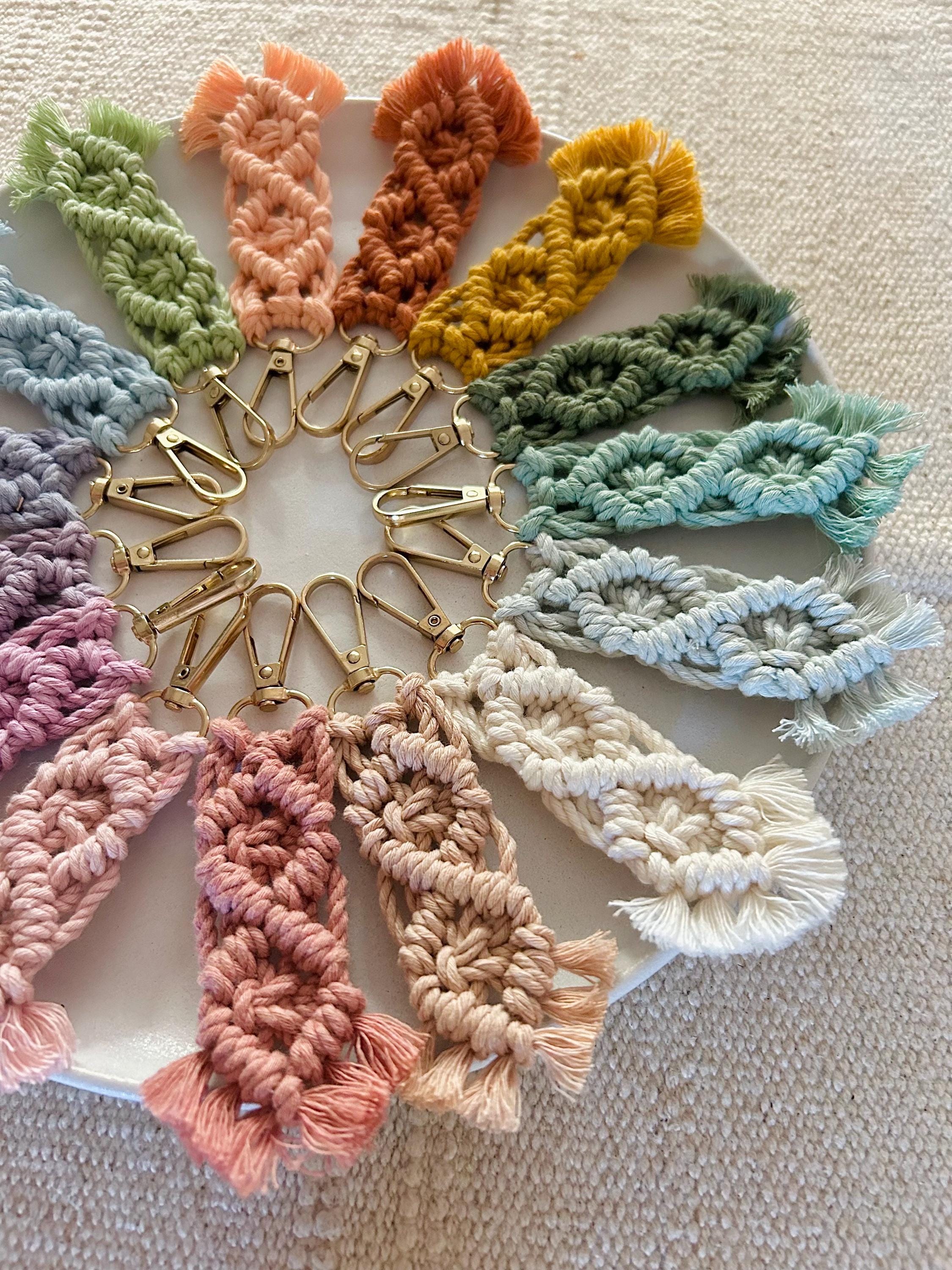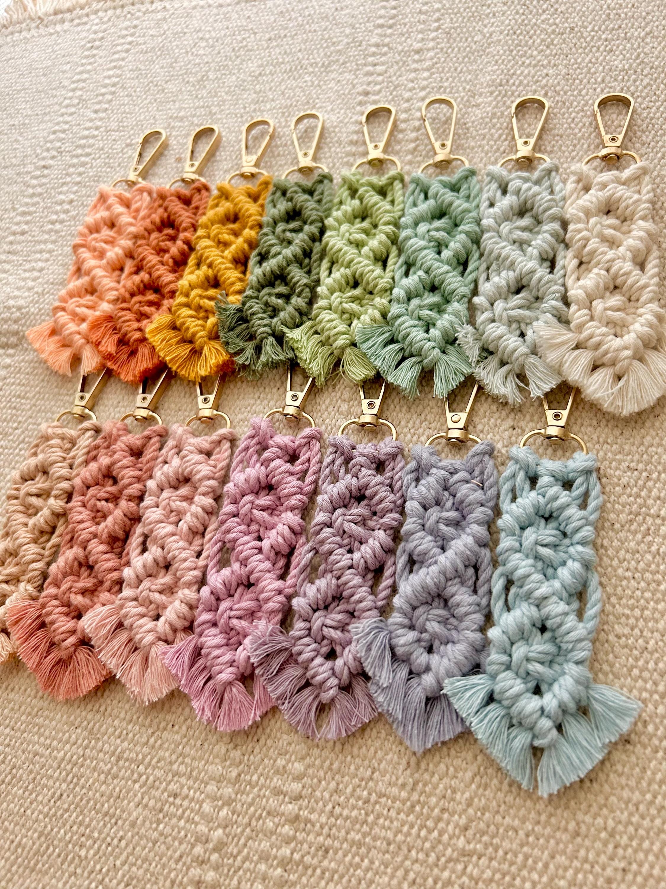 Colorful keychains completely handmade in macramé, with 100% recycled and biodegradable cotton fibers. The ropes are of the highest quality and certified OEKO TEX Standard 100.