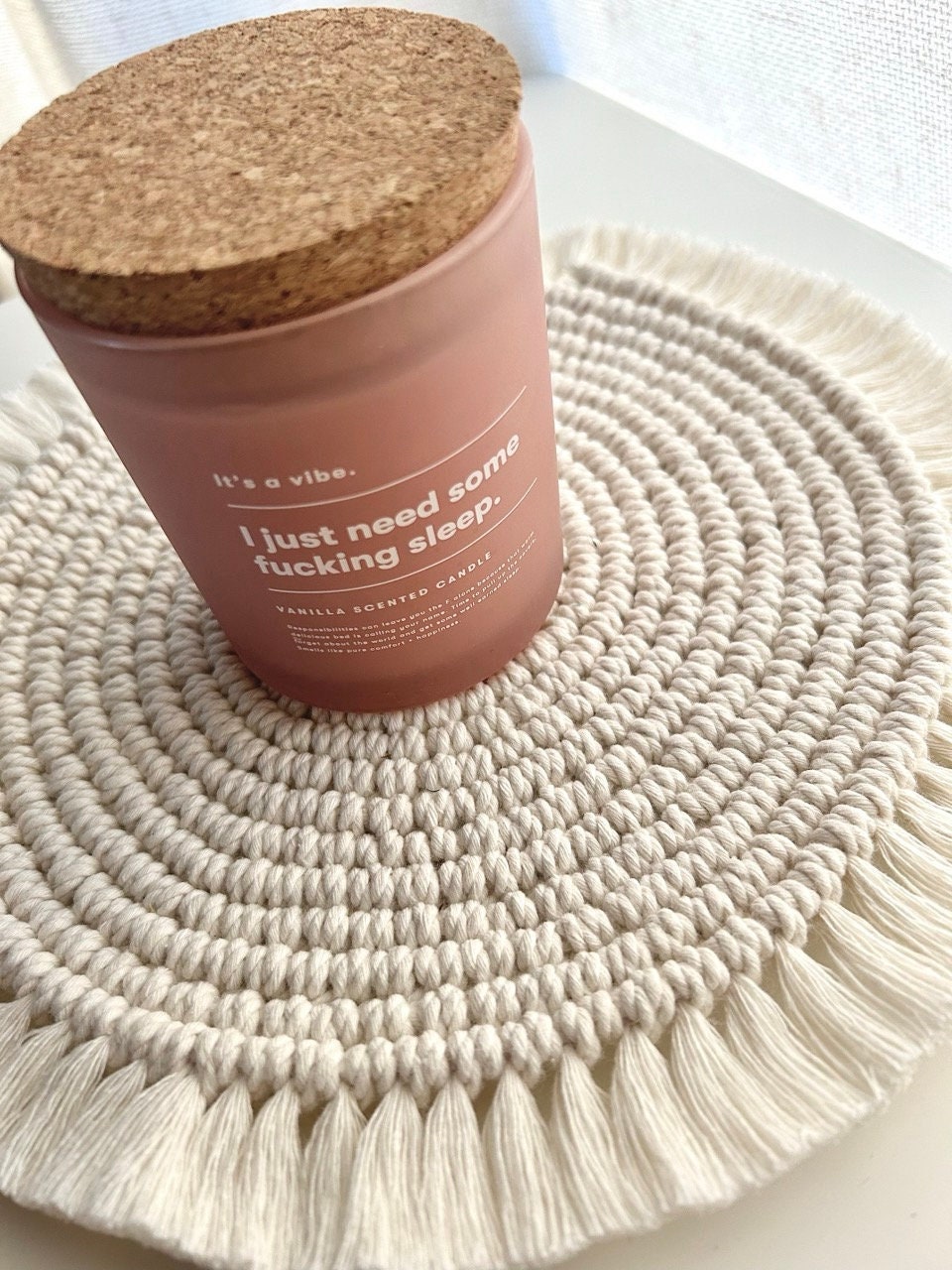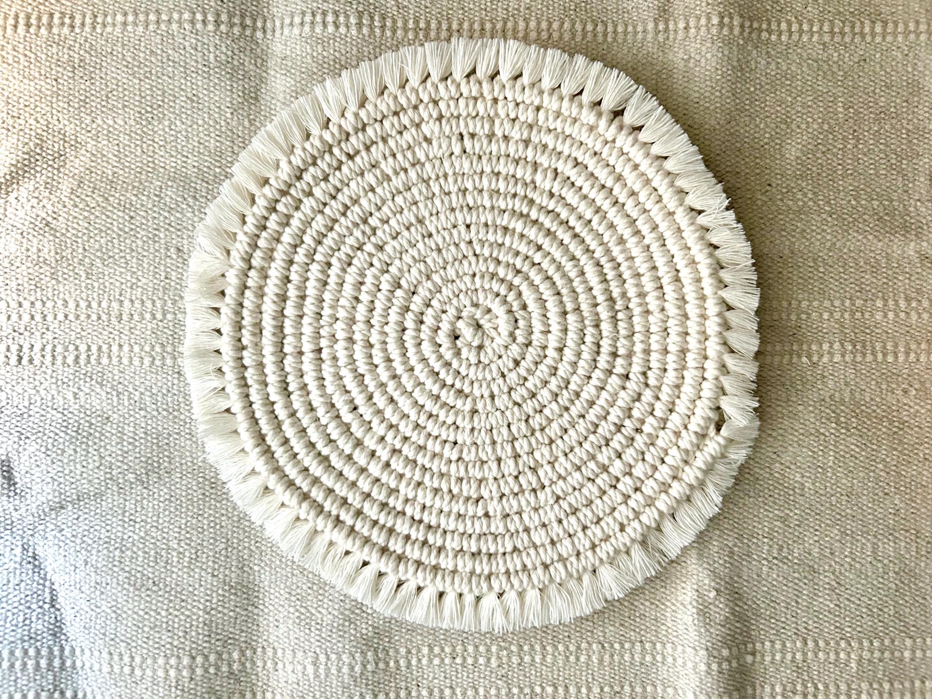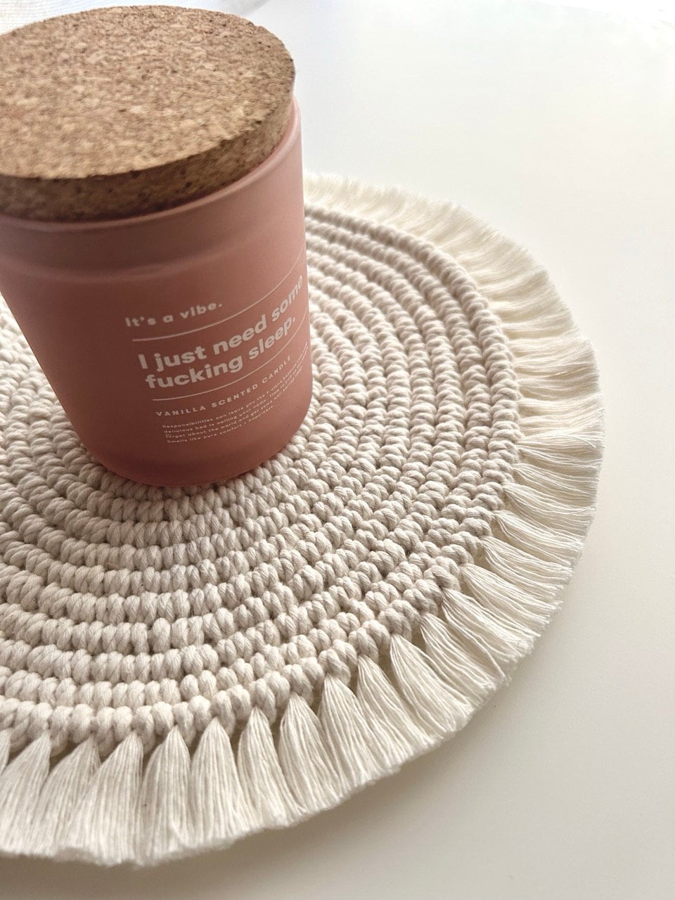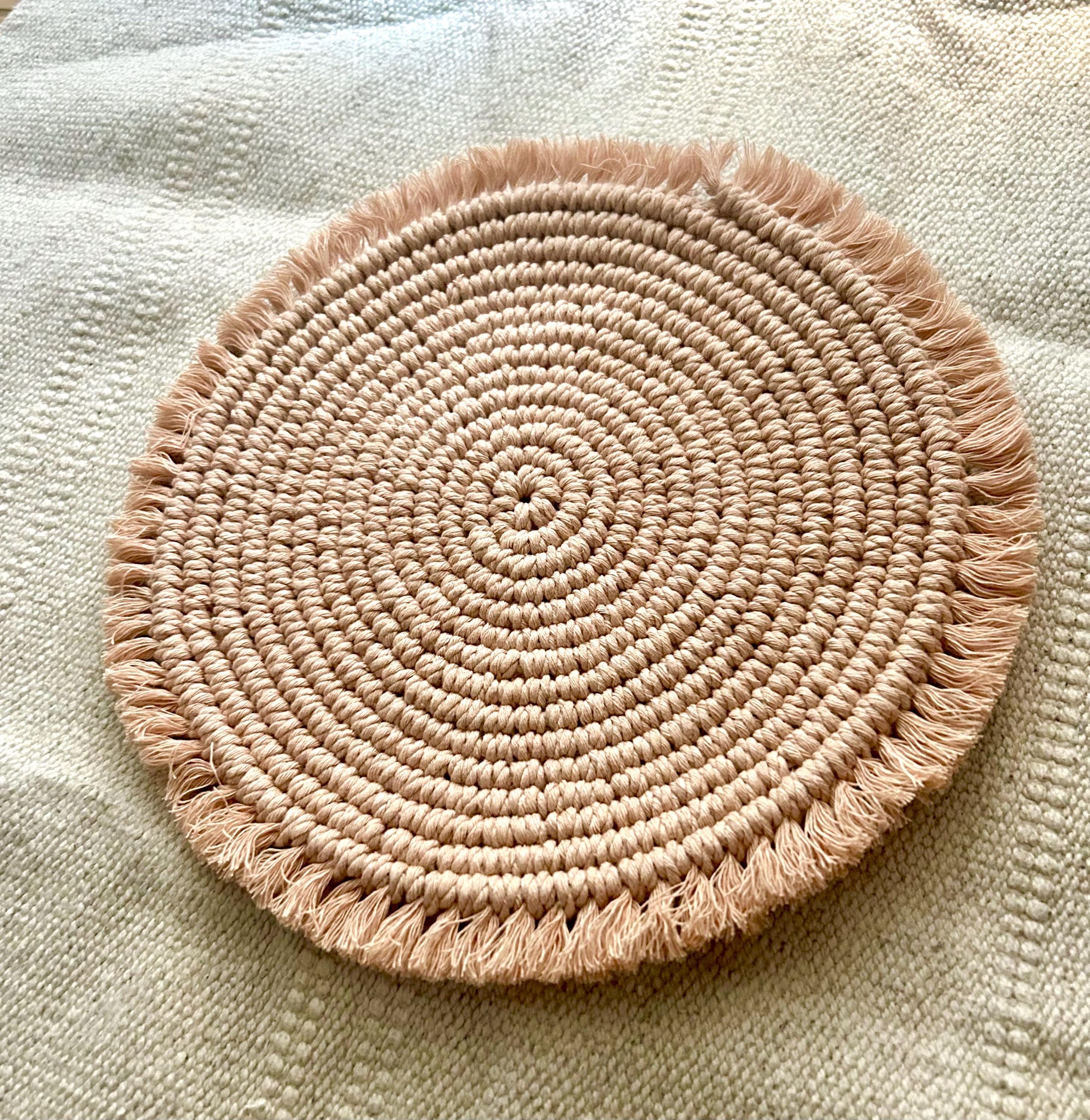 These Macrame Coasters are handmade in macramé, with 100% recycled and biodegradable cotton fibers. They will be perfect in any home and can be used as decorative accessories, under small or large objects as a rug, or as saucers or coasters.
