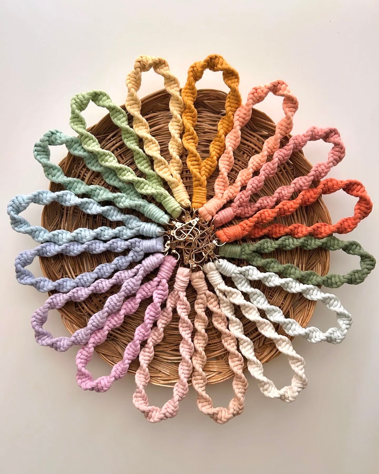 Colorful wrist keychain, entirely handmade in macramé, with 100% recycled and biodegradable cotton fibers. The cords are of the highest quality and OEKO-TEX Standard 100 certified.