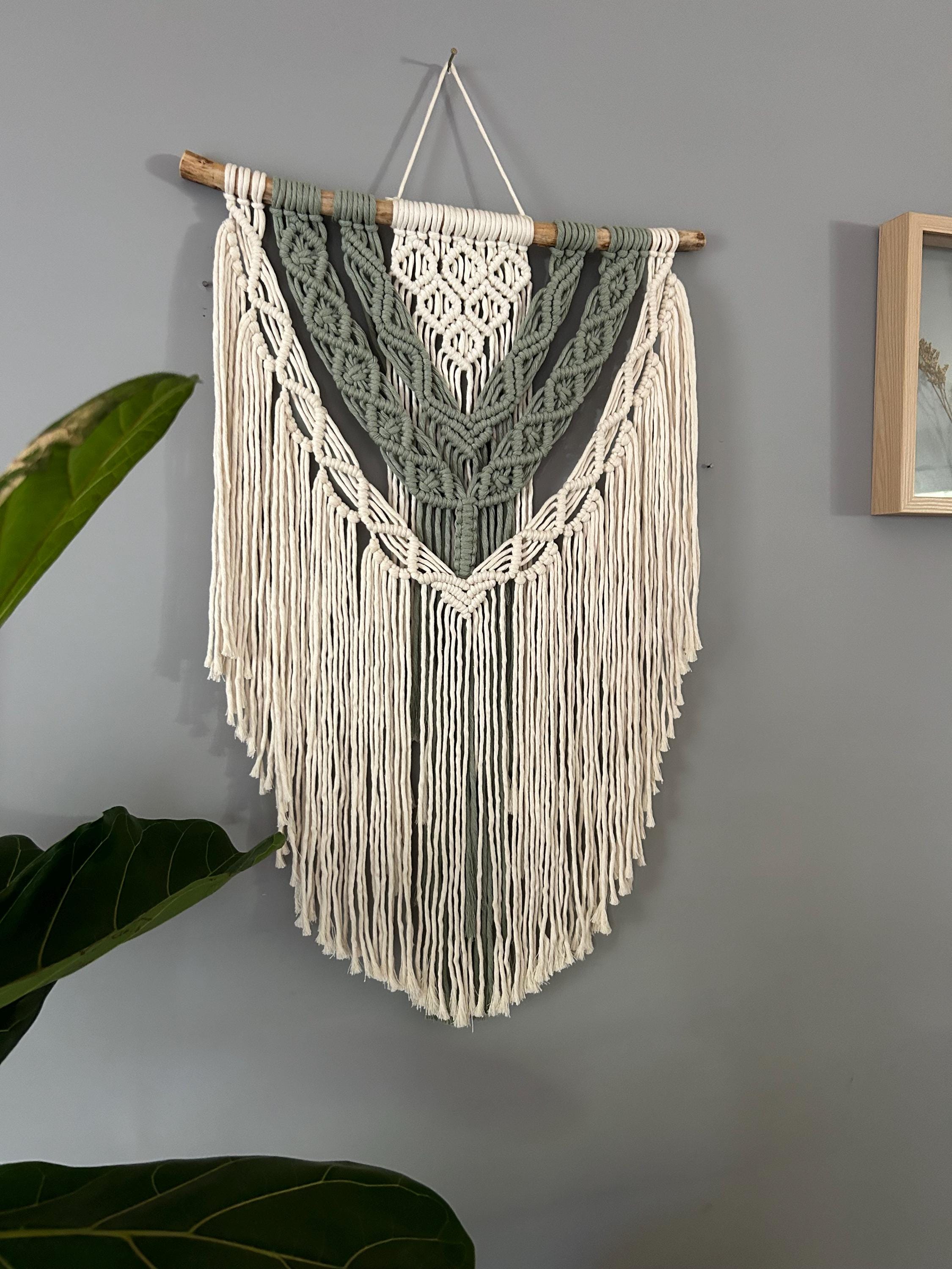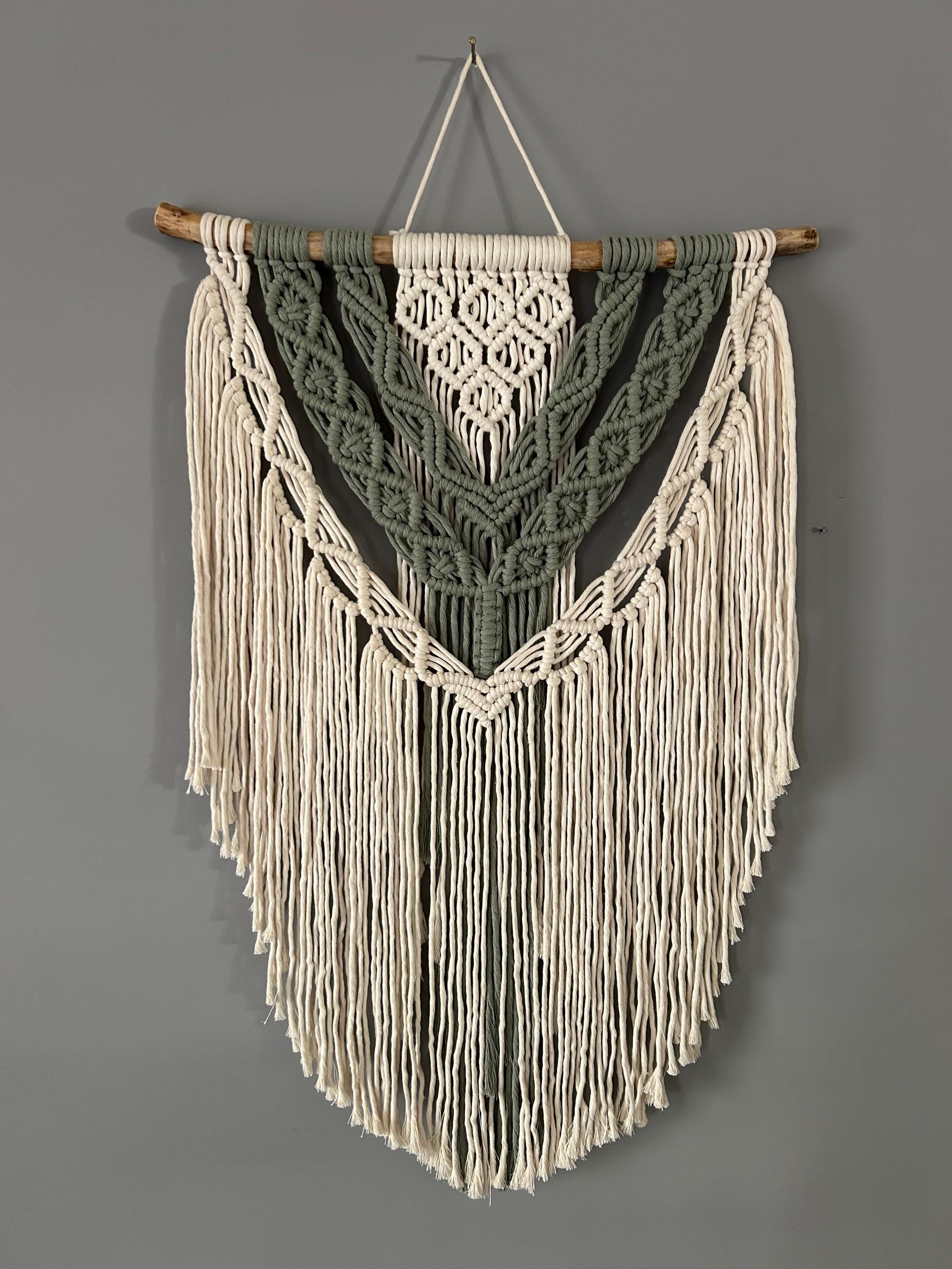 This stunning boho-style tapestry is entirely handmade in macramé, with 100% recycled and biodegradable cotton fibers and natural wood harvested and handcrafted.