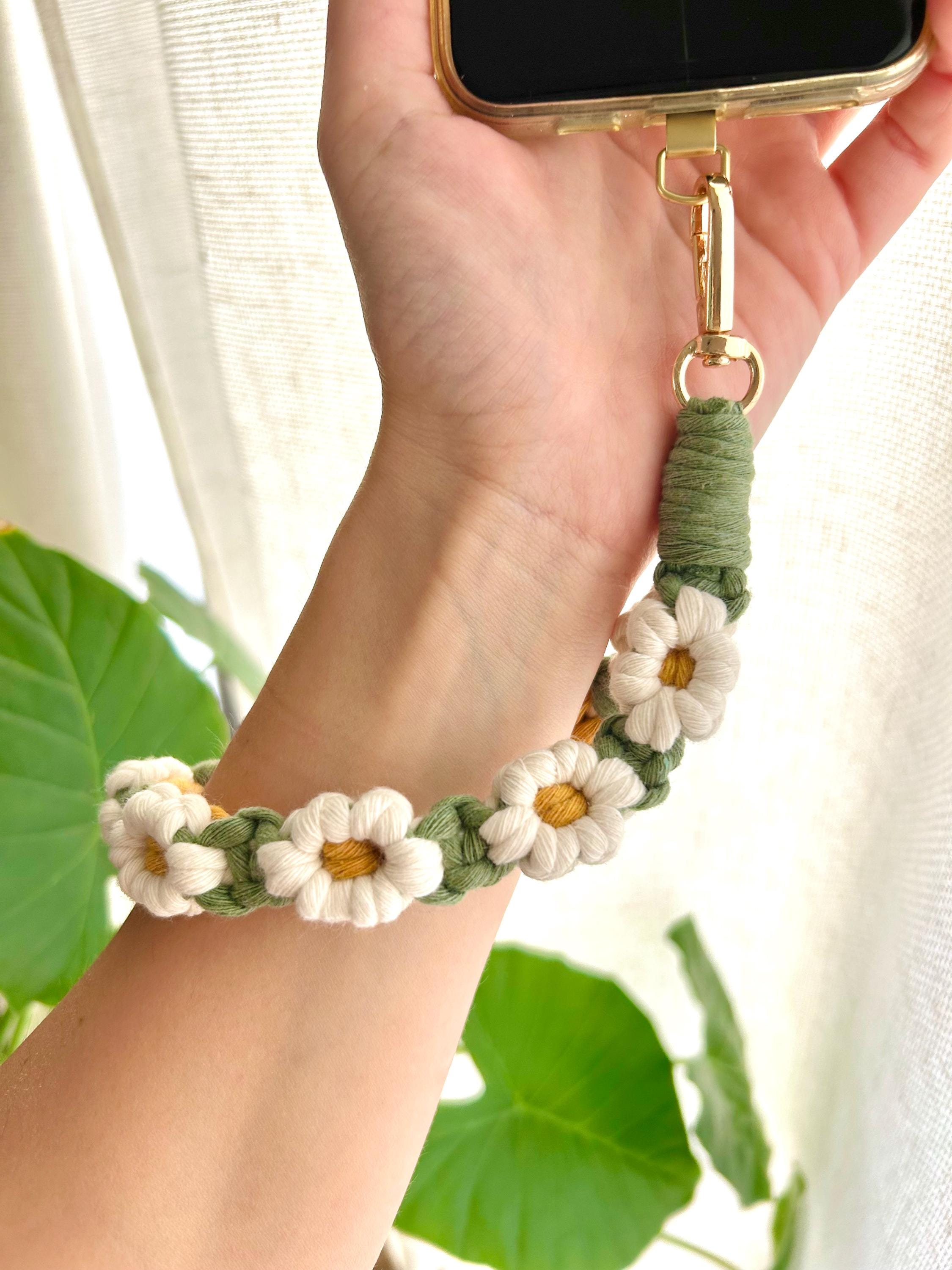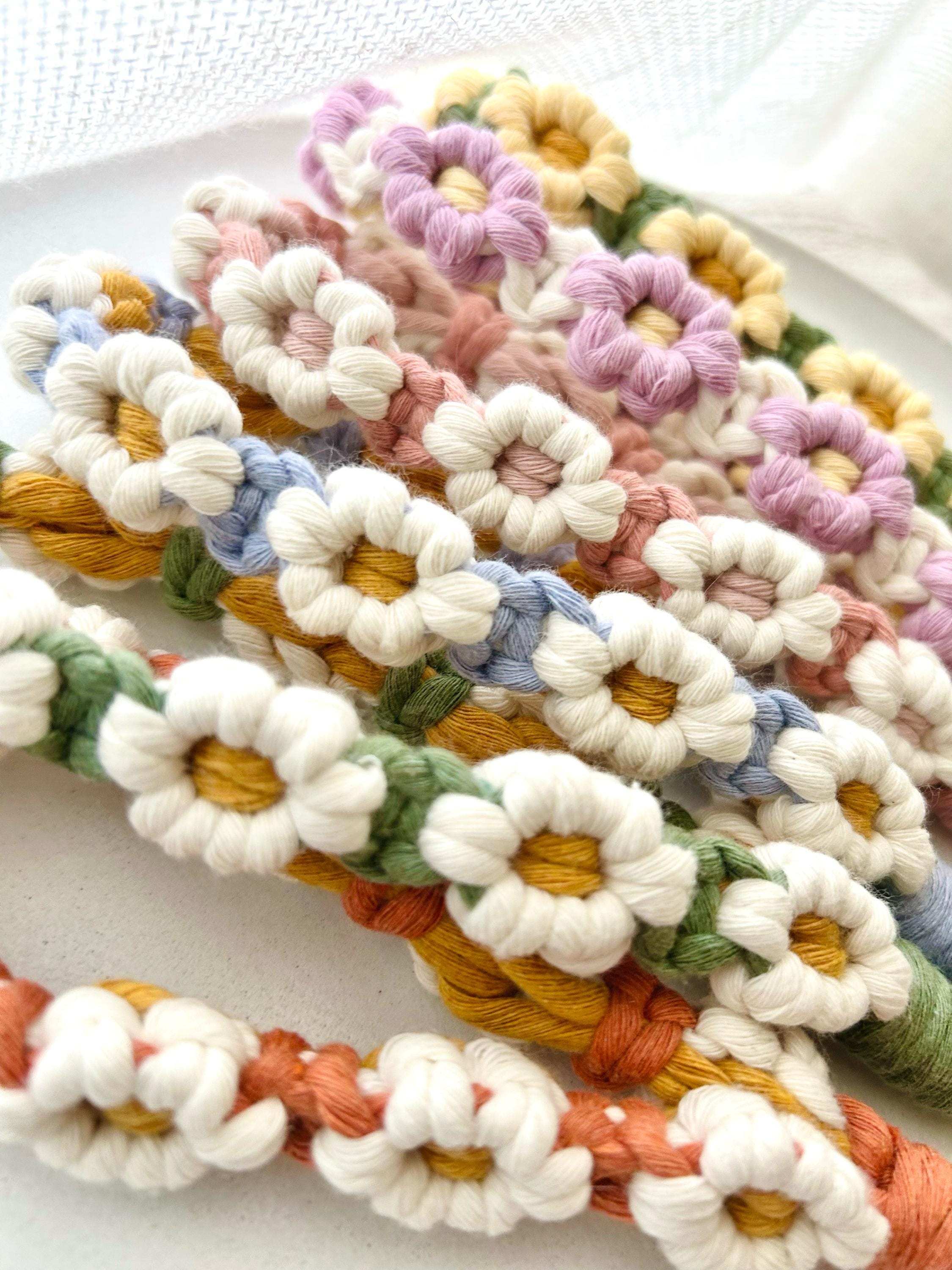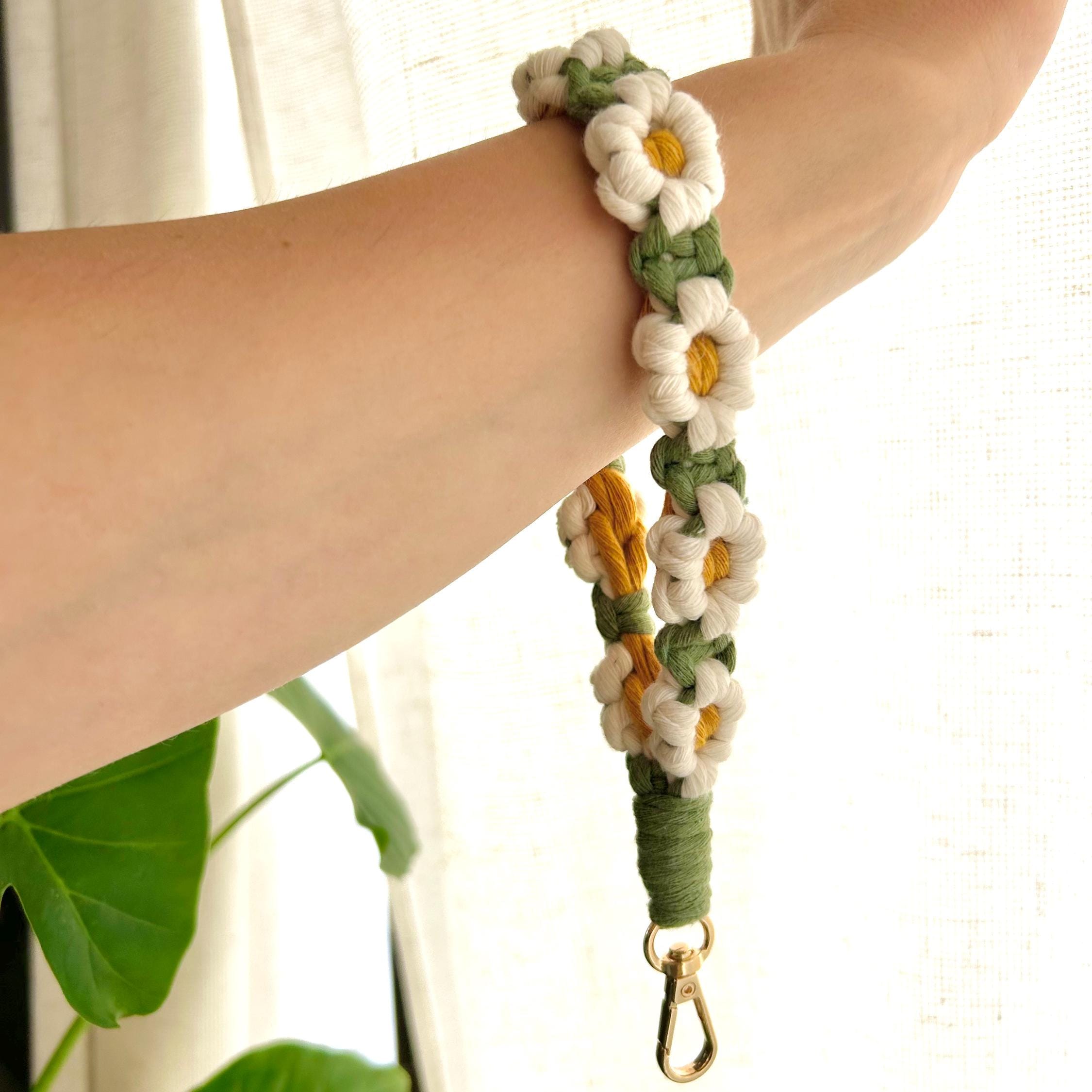 This gorgeous daisy wristlet is entirely handmade in macramé, using 100% recycled and biodegradable cotton fibers. The cords are of the highest quality and OEKO-TEX Standard 100 certified.