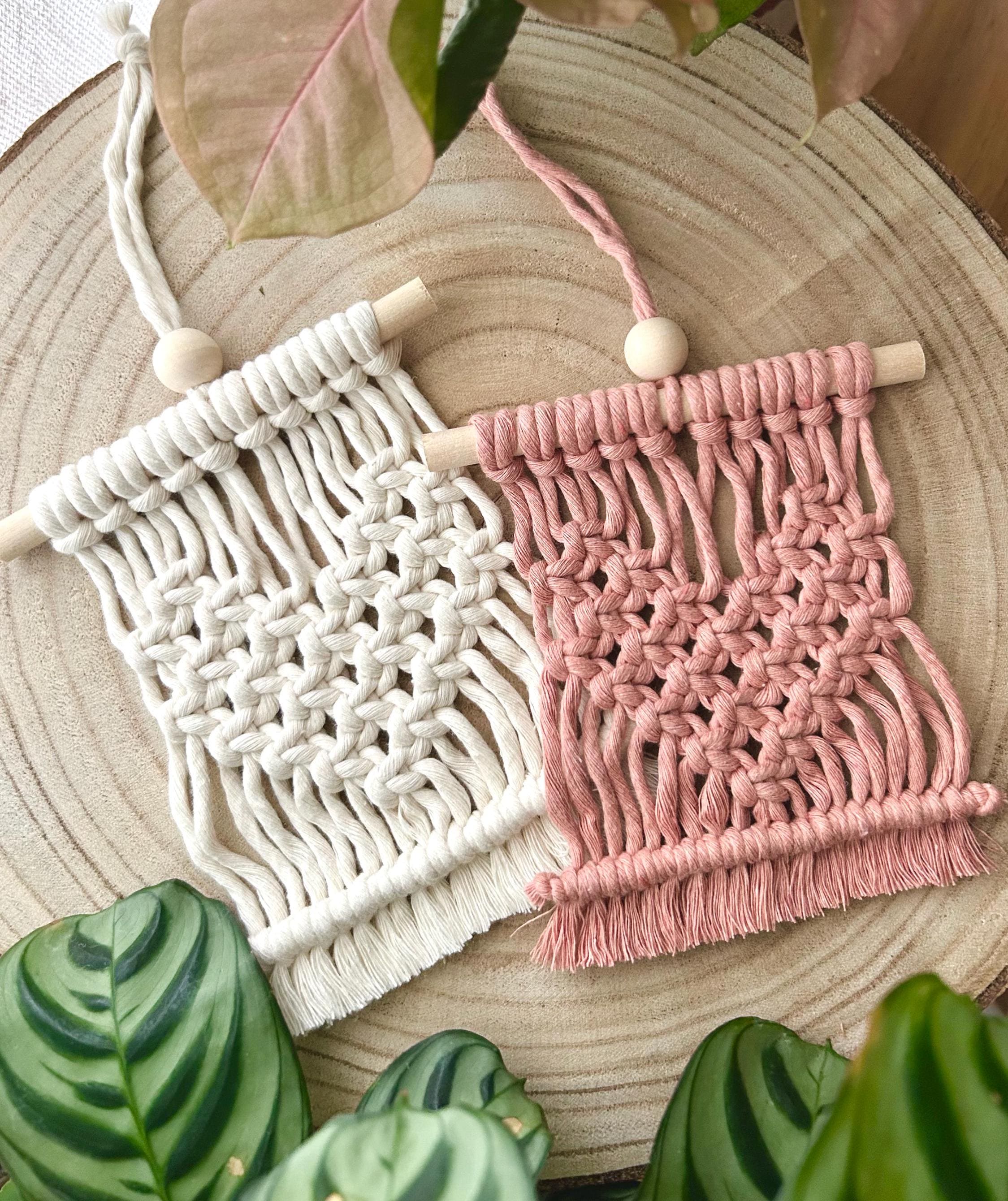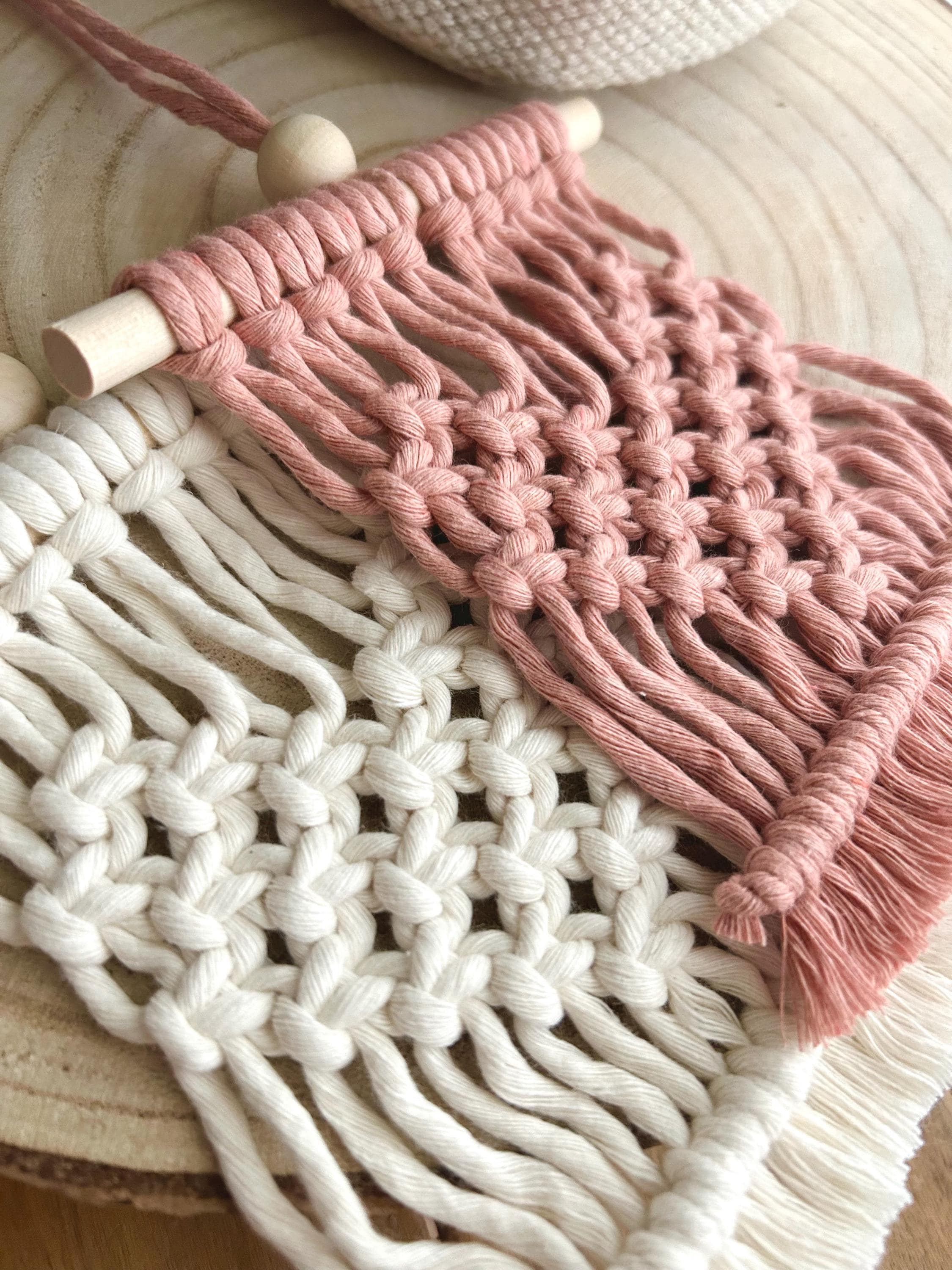 This stunning little boho-style tapestry is entirely handmade in macramé, with 100% recycled and biodegradable cotton fibers and natural wood.