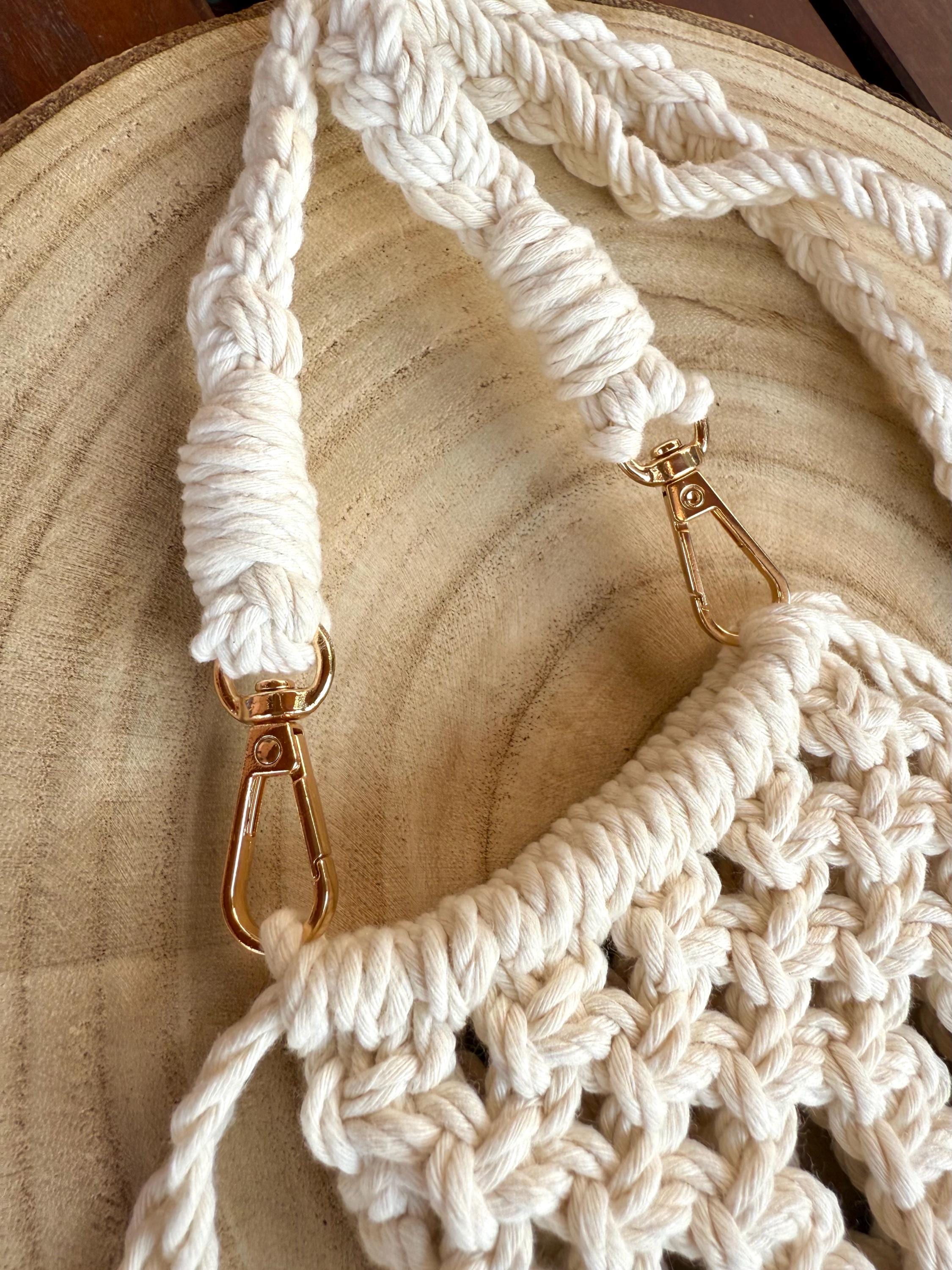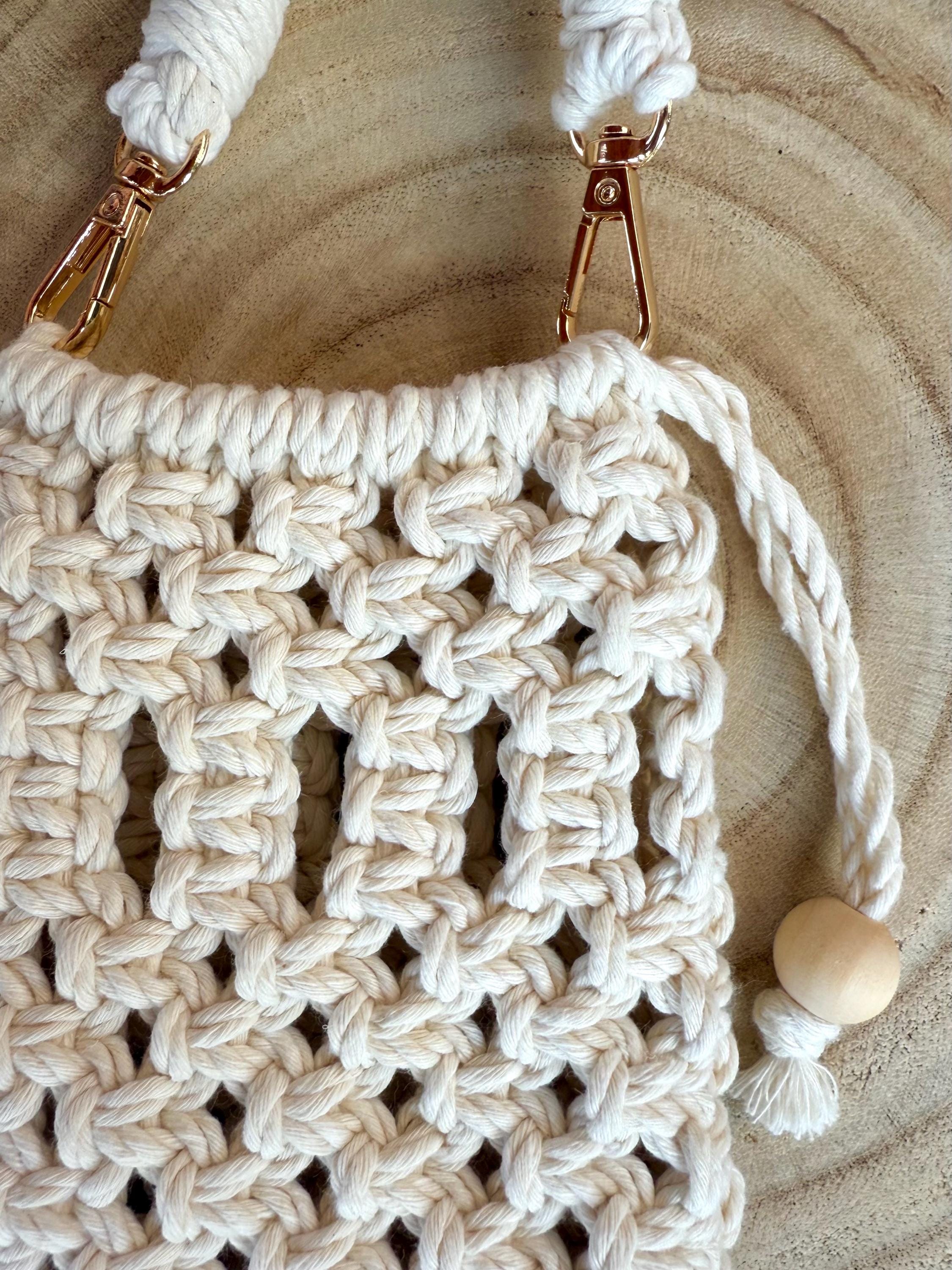 Macrame phone bag made entirely by hand, with 100% recycled and biodegradable cotton fibers, natural wooden beads and stainless steel hooks. The ropes are of the highest quality and OEKO TEX Standard 100 certified.