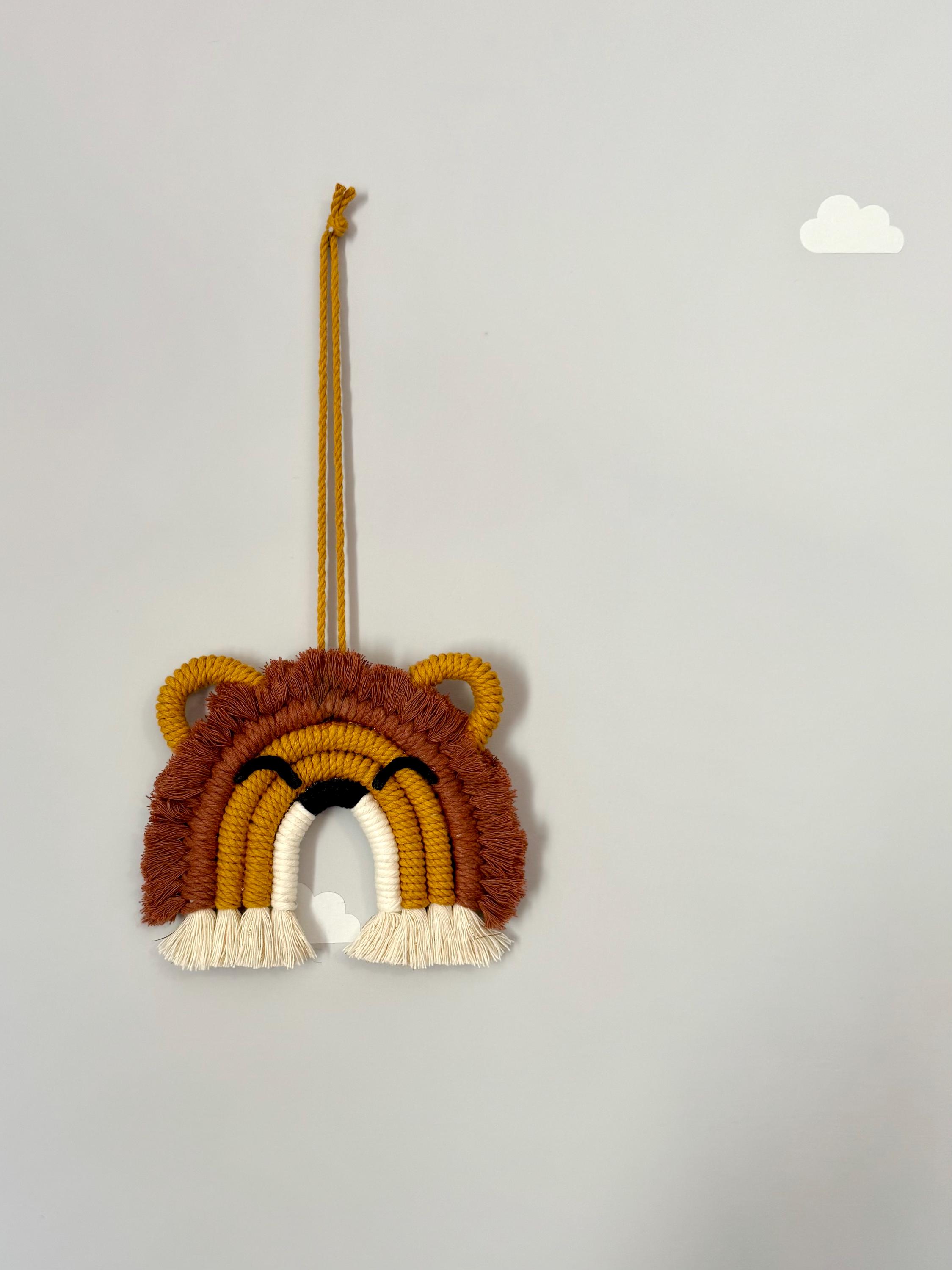 Rainbow lion-shaped birthstone, entirely handmade in macramé, with 100% recycled and biodegradable cotton fibers. The strings are of the highest quality and OEKO-TEX Standard 100 certified.