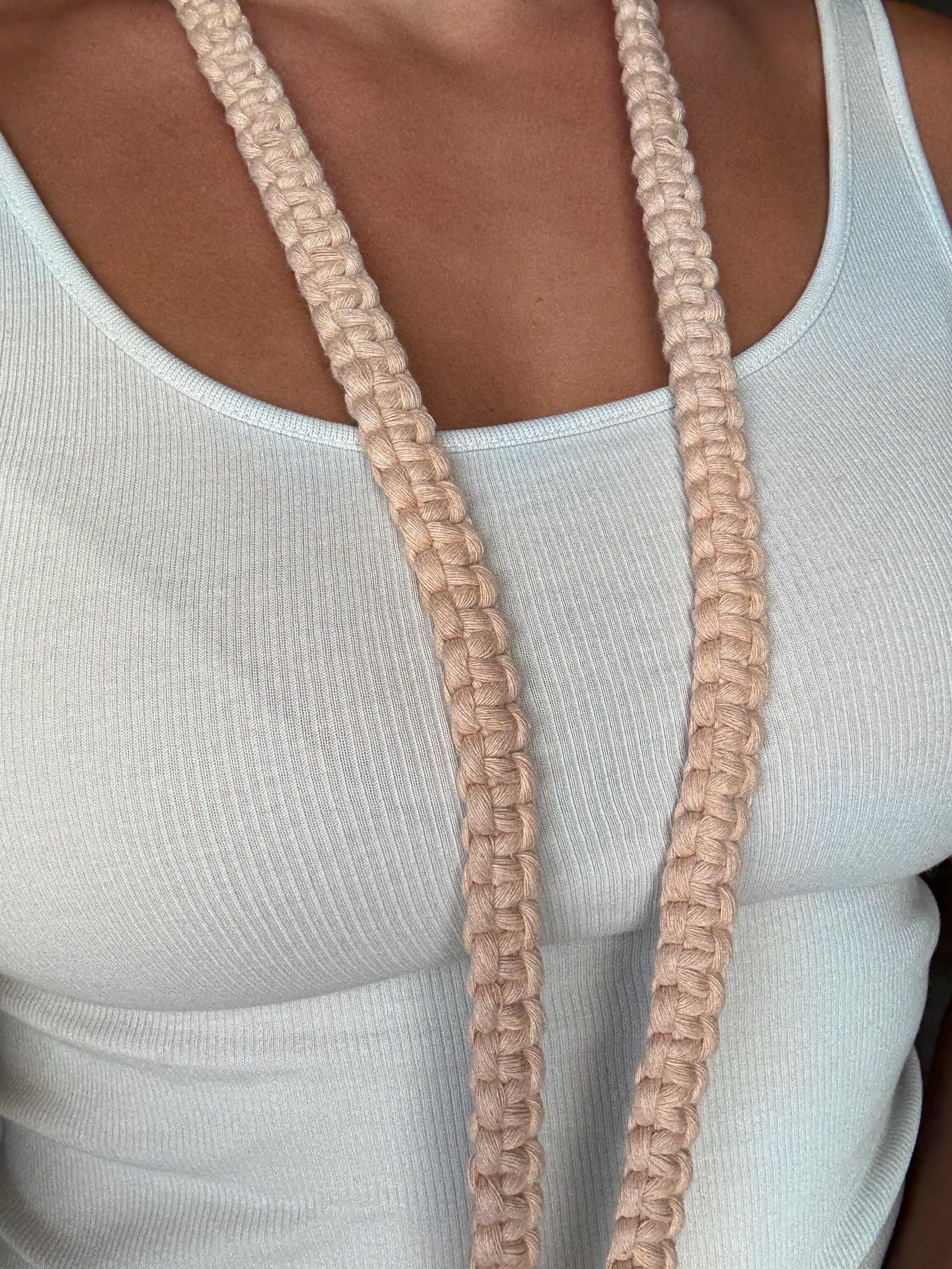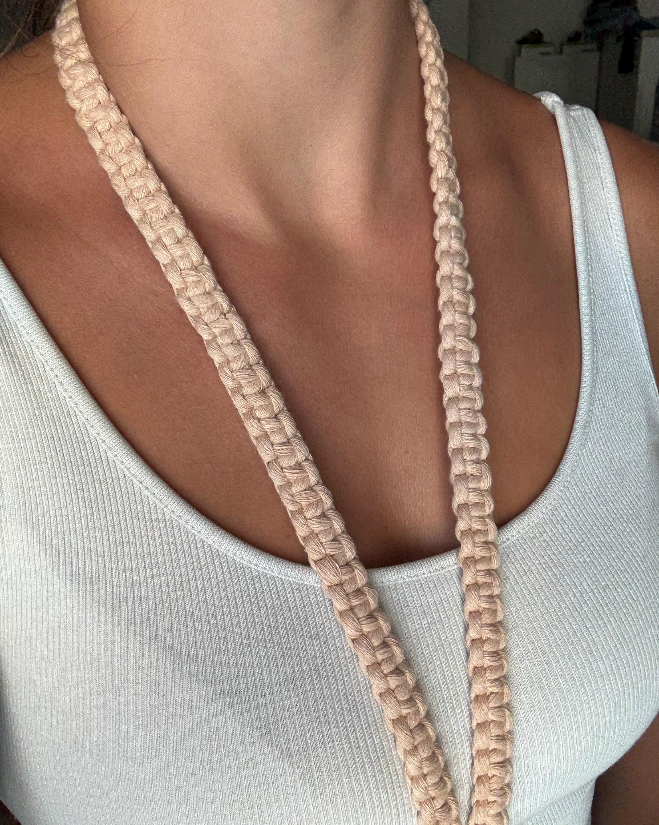 Neck lanyard or phone strap made entirely by hand in macramé, with recycled and 100% biodegradable cotton fibers.