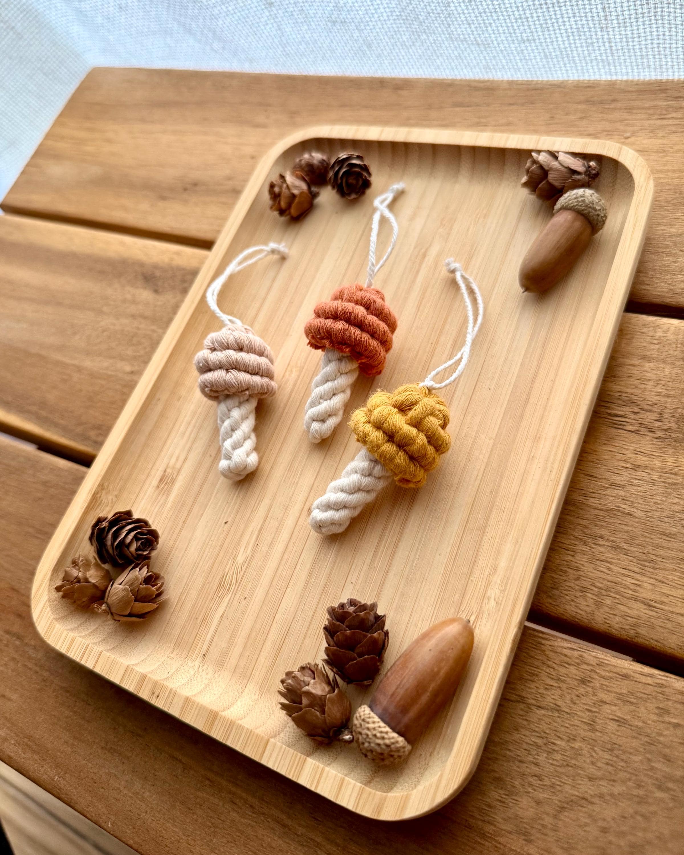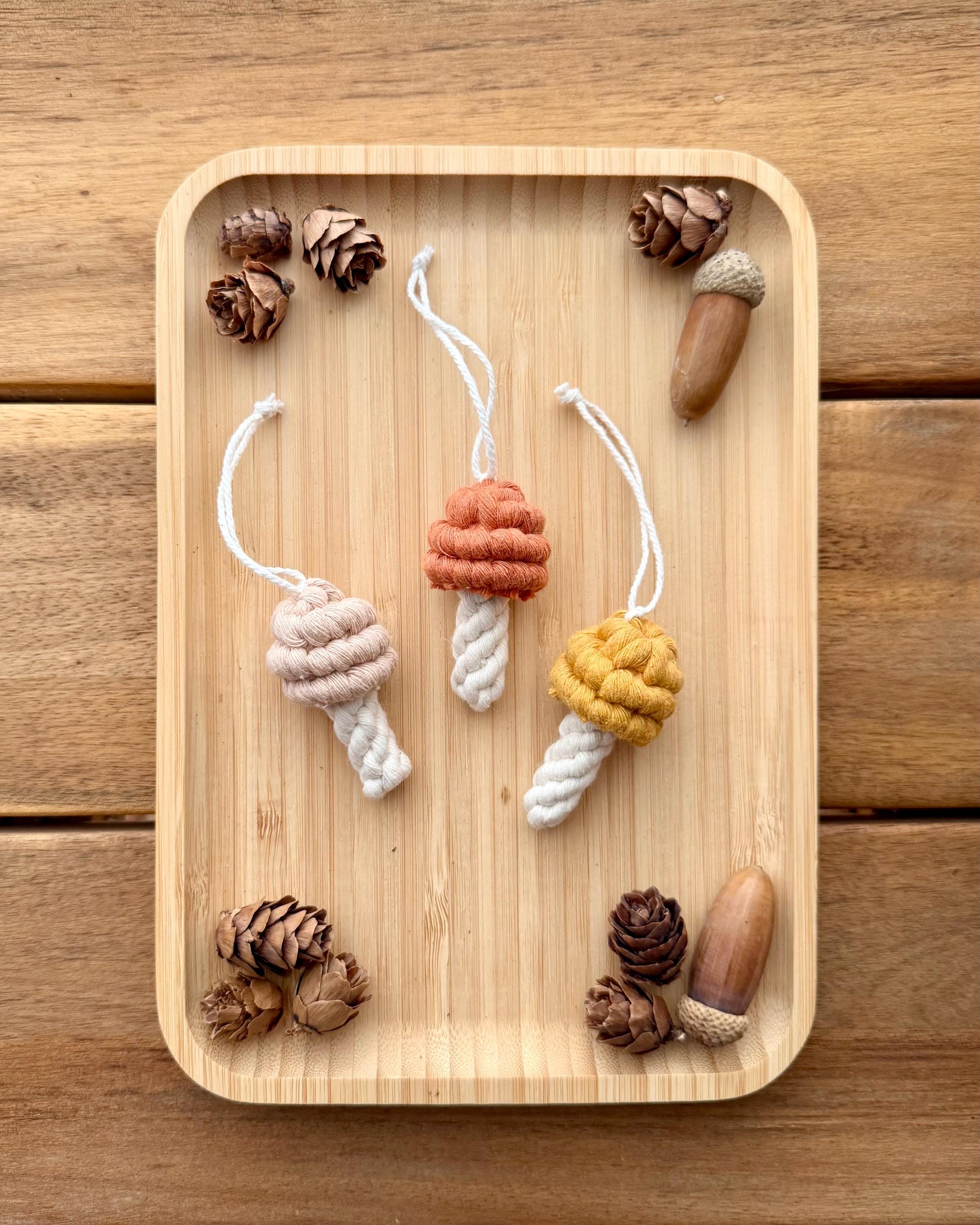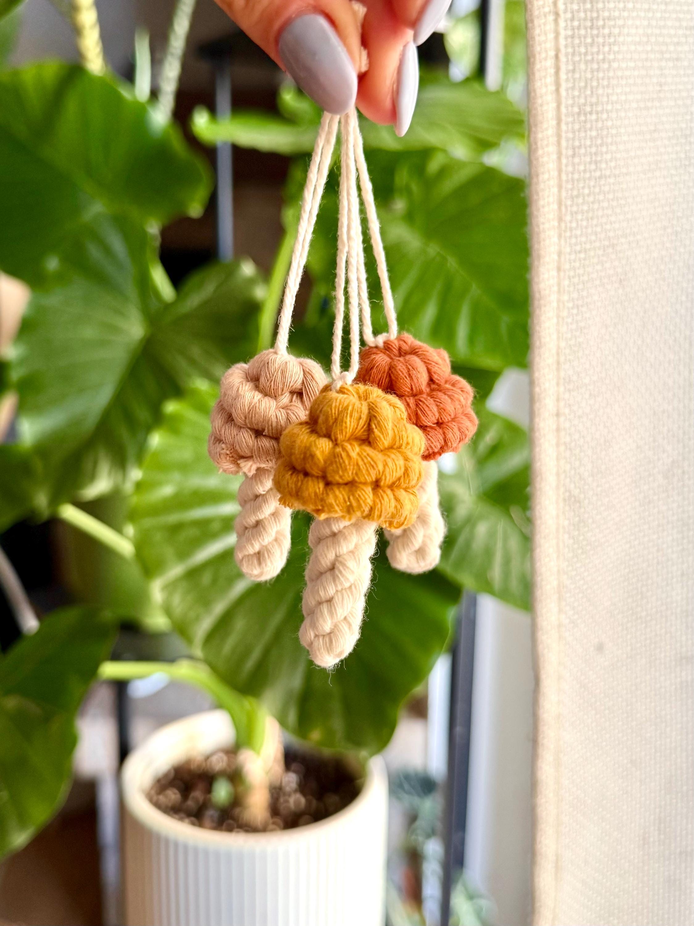 Macramé mushrooms made entirely by hand, with 100% recycled and biodegradable cotton fibers.
