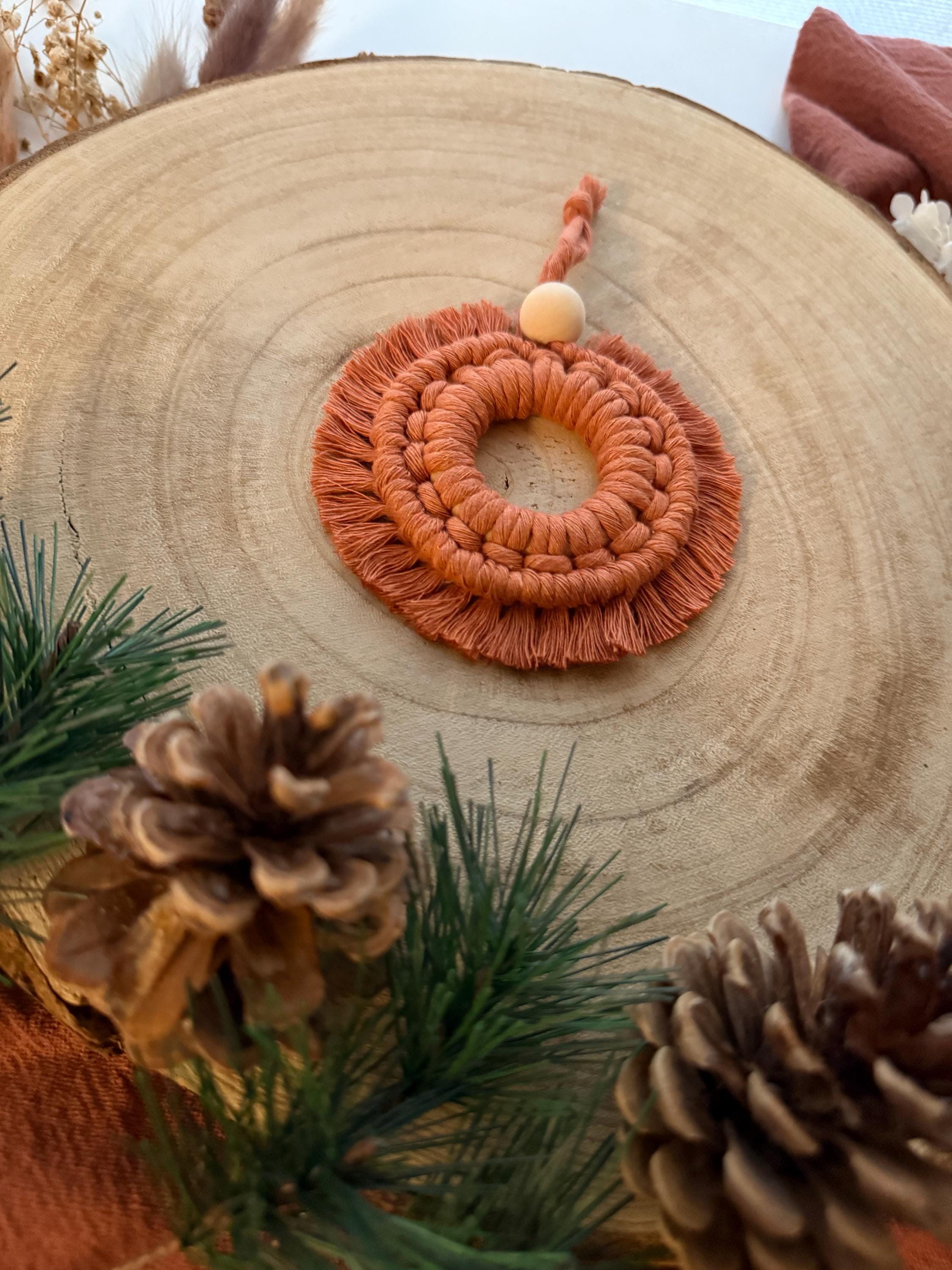 Christmas Wreath, Boho Macrame Christmas Decoration, Eco-Friendly Cotton and Wood Ornaments, Nature-Inspired Tree Ornaments