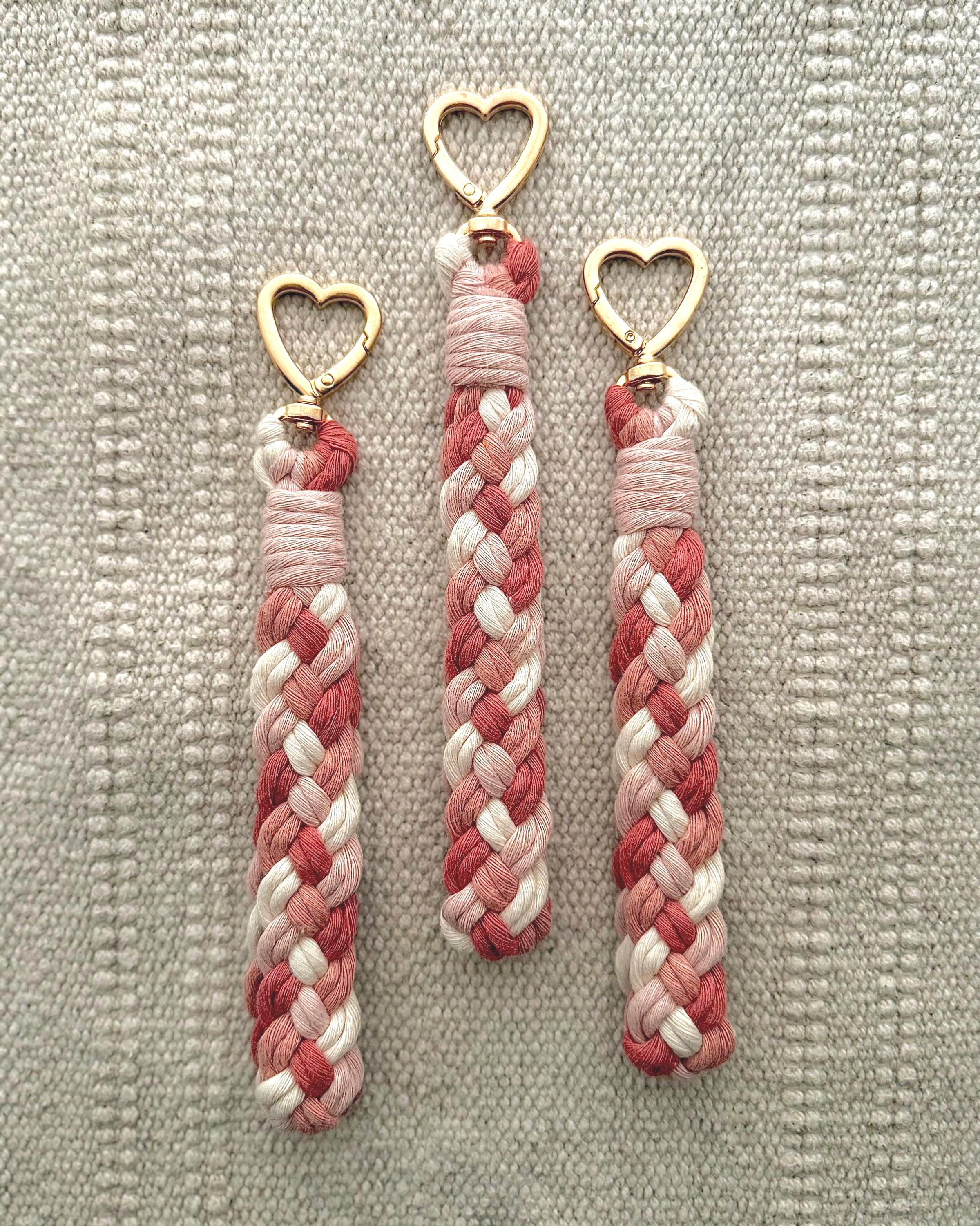 These wrist phone chains are handmade in macramé, with 100% recycled and biodegradable cotton fibers, heart-shaped stainless steel hook!